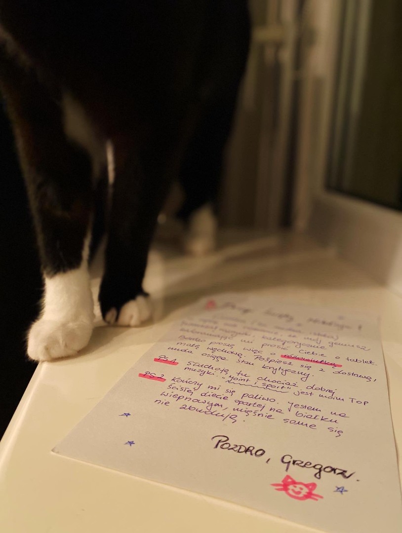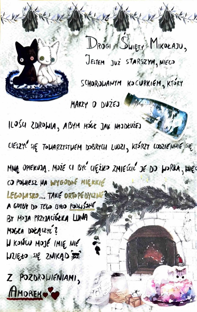 Do samej Wigilii każdego dnia będziemy publikować listy do Świętego Mikołaja od naszych kotów. Każdy list to mała historia z życia futrzaka — pełna uroku, humoru i świątecznego klimatu.