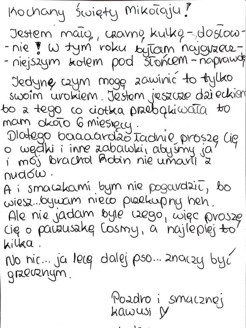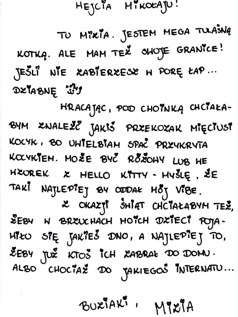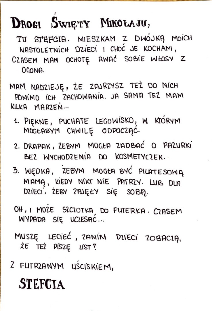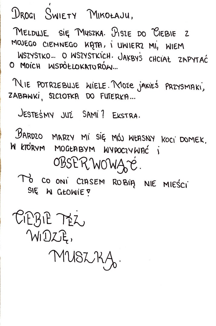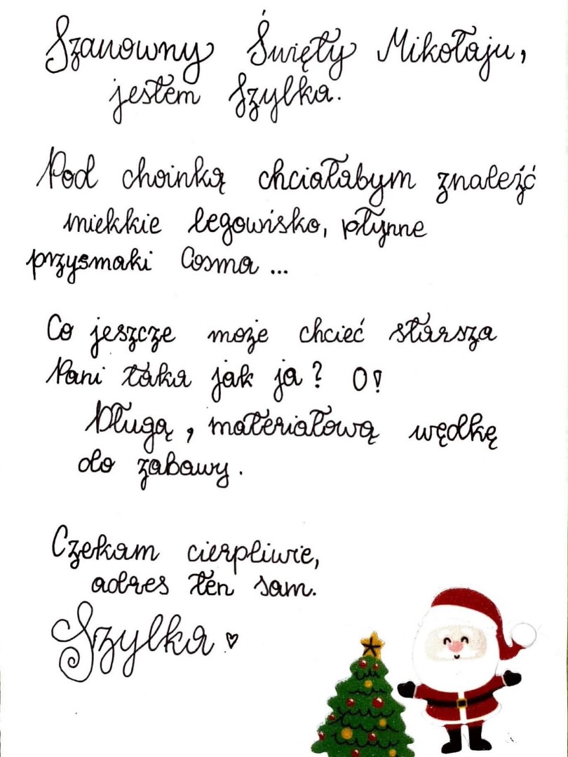 Każdego dnia publikujemy nowy list do Świętego Mikołaja od jednego z naszych kotów.